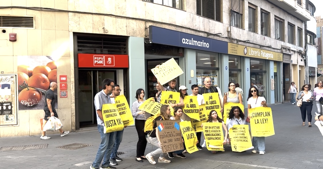 Ayer se realizó una protesta frente a la sede del PSOE en Valencia para exigir...
