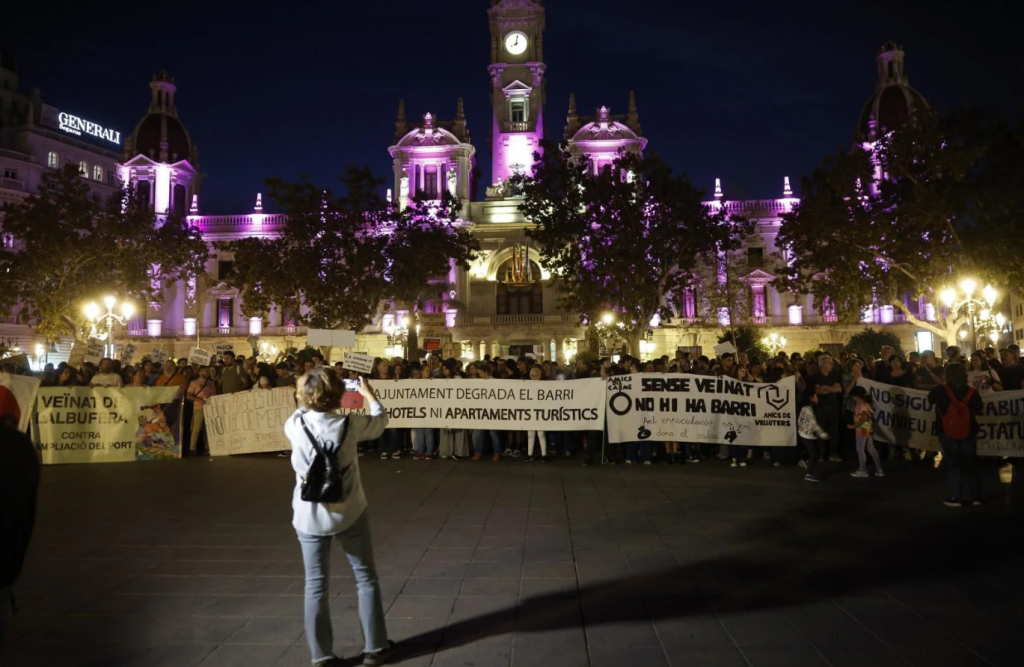 Un tema clave de la protesta fue la creciente turistificación de València, con la proliferación de apartamentos turísticos y el auge del sector hotelero. Los manifestantes exigen que se prohíban los apartamentos turísticos en áreas tensionadas y que se regule de manera estricta el negocio turístico. Critican la excesiva dependencia de la ciudad del turismo como motor económico y solicitan la reducción de la promoción de València como destino turístico, además de pedir el fin de la llegada masiva de cruceros y la expansión del puerto y aeropuerto.